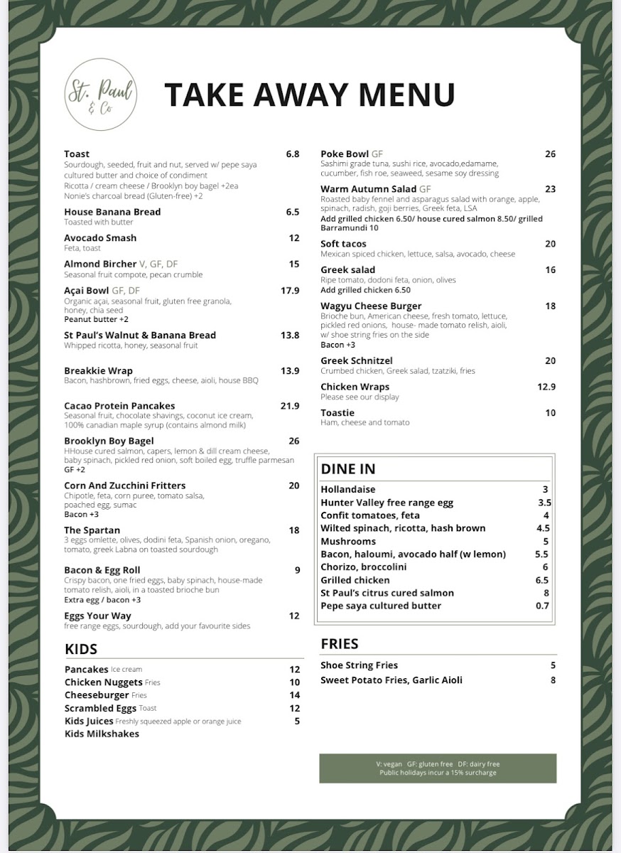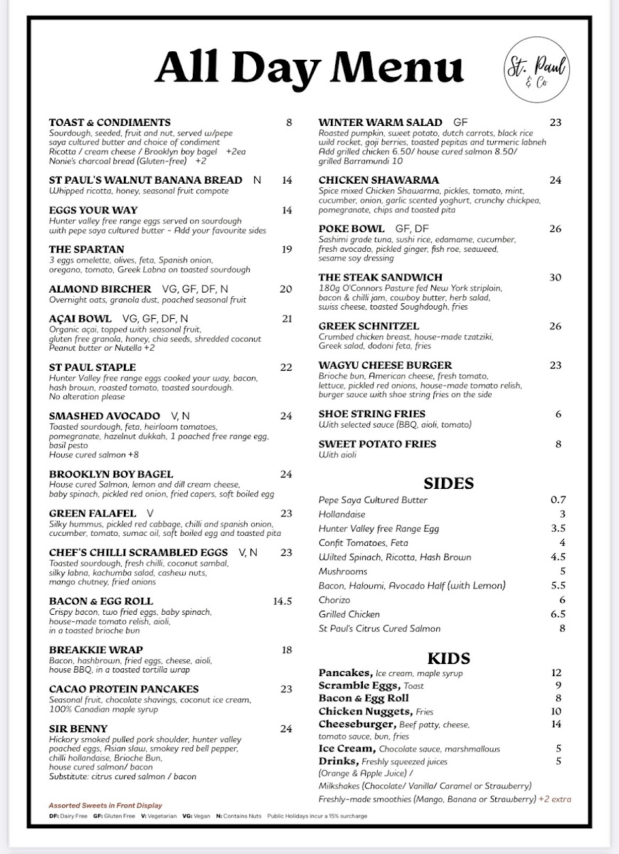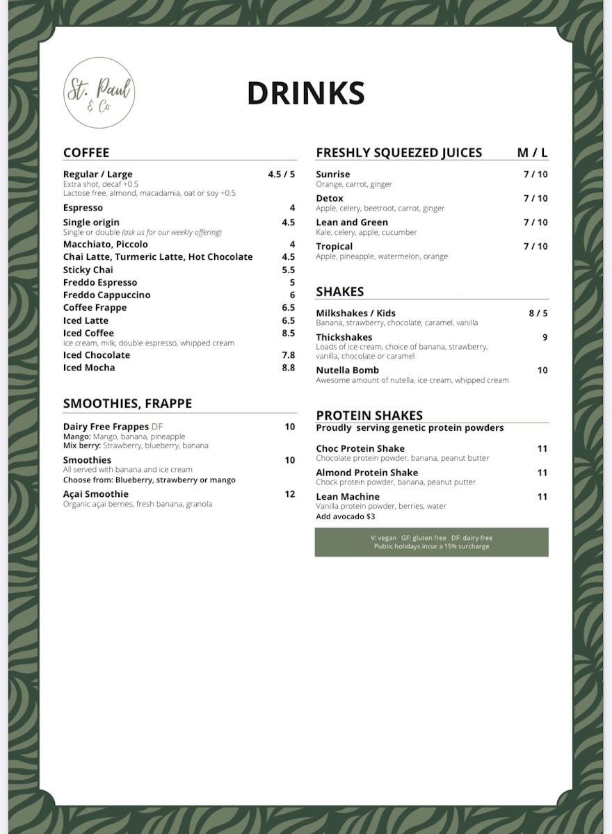 St Paul and Co places a strong emphasis on quality and creativity in their menu. Known for their phenomenal breakfast offerings, popular dishes include the Kids Bacon & Egg Roll and Chicken Nuggets with fries, perfect for the little ones. For adults, the café excels with a variety of fresh and flavourful options like the perfectly crafted Ricotta and Avocado half, or indulge in the rich, velvety Cappuccino, made from expertly frothed milk and pure espresso. Each sip and bite serves as a reminder of the care and thoughtfulness that goes into preparation.